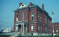 The Somerset County Courthouse is a historic county government building on Court Street in downtown Skowhegan, Maine, the county seat of Somerset County. The brick building was designed by local architect Charles F. Douglas and built in 1873, with an addition by John Calvin Stevens in 1904, and a second addition added in 1938. The building continues to serve county functions; it was listed on the National Register of Historic Places in 1984.[1]