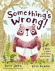 Something's Wrong!: A Bear, a Hare, and Some Underwear is a children's book written by Jory John, illustrated by Erin Kraan, and published March 23, 2021 by Farrar, Straus and Giroux.
