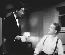 In one scene on the tramp steamer, Cagney dances with his long-time friends from vaudeville Johnny Boyle and Harland Dixon – two of the major sources of inspiration for his dancing style – which Cagney called one of the great moments of his life and a "privilege".[4] Boyle was the person who taught Cagney George M. Cohan's dancing style, which he later used to good effect in Yankee Doodle Dandy,[4] and Dixon, who staged the dances for Something to Sing About, was Cagney's dance instructor in New York before Cagney's Broadway breakthrough in Penny Arcade in 1930.[3][11]