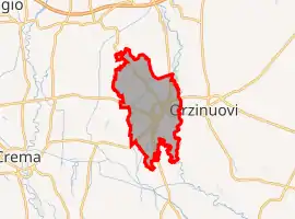 Soncino (locally Sunsì) is a comune (municipality) in the Province of Cremona in the Italian region Lombardy, located about 60 kilometres (37 mi) east of Milan and about 30 kilometres (19 mi) northwest of Cremona.