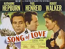 Song of Love is a 1947 biopic starring Katharine Hepburn, Paul Henreid, Robert Walker, and Leo G. Carroll, directed by Clarence Brown and released by Metro-Goldwyn-Mayer. The screenplay was co-authored by Ivan Tors, Irma von Cube, Allen Vincent, and Robert Ardrey, based on a play by Bernard Schubert and Mario Silva.