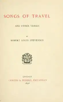 Songs of Travel and Other Verses is an 1896 book of poetry by Robert Louis Stevenson. Originally published by Chatto & Windus,[1] it explores the author's perennial themes of travel and adventure. The work gained a new public and popularity when it was set to music in Songs of Travel by Ralph Vaughan Williams.