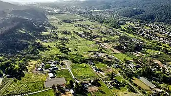 Once a valley of the coastal Miwok, Pomo and Wintun peoples, called the "Valley of the Moon" in their legends, the valley was selected by the Franciscan order of Spain as the site to build the Mission San Francisco Solano, the northernmost mission in their chain of twenty-one missions built in Alta California.[3] Established in 1823 and named to honor St. Francis Solanus, Mission Solano was the sole California mission established under the rule of a newly independent Mexico. Within two generations of the Spaniards' arrival, however, the indigenous societies of the region were dispossessed of their land and decimated by diseases to which Europeans were resistant. Soon after the Sonoma mission was built, it was secularized by the Mexican government, and, under the orders of Lieutenant, later General Mariano Guadalupe Vallejo, el Pueblo de Sonoma (the town of Sonoma) was laid out in the standard form of a Mexican town, centered around the historic plaza, which is still the town's focal point.[3] Also known as "Valley of the Seven Moons"[4] The raising of the first California Bear Flag and Vallejo's arrest in 1846 by a band of Americans claiming to act on the orders of Col. John C. Fremont was the initial act that founded the Bear Flag Republic.[5] Vallejo later transferred his allegiance with US statehood (1850), and with his amassed land holdings guided the development of the town and dispensed large ranches throughout the valley.[6] California's first wineries were established here, including Buena Vista Winery (1857) and Gundlach Bundschu (1858).