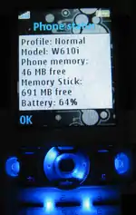 - 77 MB internal memory, expandable with memory stick micro slot up to 2 GB