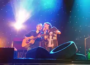 On July 5, the members of the group announced yet another concert in 2011, to be held in their home town of Girona on September 30,[10] and two more concerts, in Palma and Tarragona, were announced later in July.[11] A final, second concert in Girona on October 1 was announced in August, making seven gigs in all.[12] The members of Sopa de Cabra in 2011 are the same as in 2001, including Eduard Font on keyboards, with the addition of one musician who belongs to a younger generation of Catalan music: Xarim Aresté, singer, guitarist and songwriter with the group Very Pomelo.