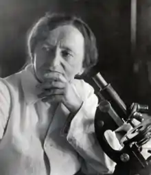 In 1905, Getzowa was hired by Professor Hans Strasser as first female assistant at the Bern Institute of Anatomy.[8][30][31] She began analysis of goiters and parathyroid tissues and along with Langhans and other of his students was one of the key researchers who clarified the origin of thyroid tumors.[32][33] She continued with her studies, this time at the Institute of Pathology, under the direction of Theodor Langhans and Ernst Hedinger,.[1] Thanks to her pleasant demeanor, she was popular with her fellow students and colleagues. In 1907, Carl Wegelin was so impressed by her removal of a tumor by abdominal incision that he developed a close professional relationship with her.[34] Wegelin later became the first president of the Swiss Academy of Medicine.[35][36] That same year, she discovered solid cell nests (SCN), becoming the first to describe them.[37] As Langhans was nearing retirement, he prepared for his departure and both Wegelin and Getzowa were encouraged to apply for the post. Wegelin had habilitated in 1908[36] and Langhans used Getzowa's research to grant her Habilitation in 1912.[1][38][36] Though seven years younger than Getzowa, Wegelin succeeded Langhans as director of the Anatomical institute.[36] and she was appointed as a Privatdozent at the University of Bern.[38]