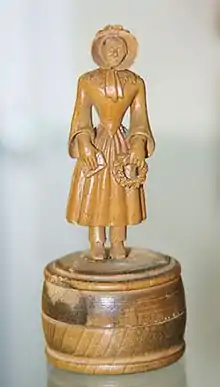 Helena Isberg was born at Säby in Tranås in Småland. She moved with her parents and brother to Motala in 1840, where she lived her entire life. Her father was a cabinet maker. Isberg was tutored by her father to cabinet maskery, lathing and carving, and was to become famous for her wood carving. In 1847, her work was exhibited in Stockholm, and made a success. She was asked to move to Stockholm, the professor Carl Gustaf Qvarnström (1810–1867) offered her a scholarship to study at the Royal Swedish Academy of Arts, Queen Josephine offered her an allowance of $200, but she declined every offer. A contemporary writer wrote about her: She preferred to stay in the poor hut where she was born, and remained in the bosom of the poverty which had surrounded her cradle.[1]