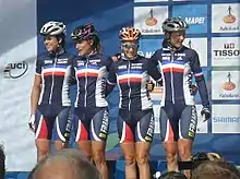 ![]() Sophie Creux (black helmet) at the 2012 UCI Road World Championships | |