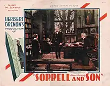 Sorrell and Son is a 1927 American silent drama film released on December 2, 1927 and nominated for the Academy Award for Best Director at the 1st Academy Awards the following year.[1] The film was based on the 1925 novel of the same name by Warwick Deeping, Sorrell and Son, which became and remained a bestseller throughout the 1920s and 1930s.