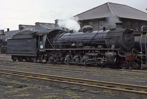 In late 1919, the South African Railways placed a third batch of twenty Class 14C steam locomotives with a 4-8-2 Mountain type wheel arrangement in service. In addition to the first three batches, one more batch would be acquired in 1922, all four with different maximum axle loadings, to bring the total in the class to 73. Through reboilerings, rebalancings and cylinder bushings during its service life, this single class eventually ended up as six distinct locomotive classes with two boiler types and a multitude of axle loading and boiler pressure configurations.[1][2][3][4][5]