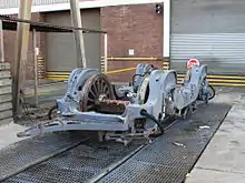 The twenty Series 1 locomotives were identical to the Class 6E in most respects including their AEI-283AZ traction motors, power output, tractive force and body dimensions. The only visually obvious distinguishing feature to tell the Class 6E1, Series 1 apart was its new design bogies with their distinctive traction struts and linkages.[1][6]
