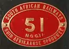 The system of grouping narrow-gauge locomotives into classes was only adopted by the SAR somewhere between 1928 and 1930. At that point, in spite of the difference between the two batches of 1919 and 1925, these five locomotives were all classified as Class NG G11, with the letters "NG" indicating narrow gauge and the "G" prefix to the classification number identifying it as a Garratt locomotive.[2][9][10]