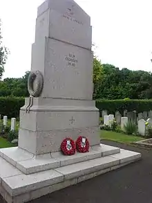 The South African War Memorial is a First World War memorial in Richmond Cemetery in the London Borough of Richmond upon Thames. Designed by architect Sir Edwin Lutyens, the memorial is in the form of a cenotaph, similar to that on Whitehall, also by Lutyens. It was commissioned by the South African Hospital and Comforts Fund Committee to commemorate the 39 South African soldiers who died of their wounds at a military hospital in Richmond Park during the First World War. The memorial was unveiled by General Jan Smuts in 1921 and was the focus of pilgrimages from South Africa through the 1920s and 1930s, after which it was largely forgotten until the 1980s when the Commonwealth War Graves Commission took responsibility for its maintenance. It has been a grade II listed building since 2012.[1]