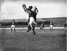 South Australia has an intense and long rivalry with Victoria.[3] The rivalry was characterised by the catchcry in South Australia called "Kick a Vic" and fans would bring signs of the cry to the games.[1] The South Australia and Victoria rivalry was characterised by long-time South Australian player Andrew Jarman, who has said "it was the mother of all battles".[4] Some of the games between South Australia, Victoria and Western Australia in the 1980s and 1990s have been described as "some of greatest games in the history of Australian football".[5]