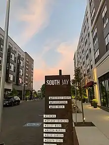 The area surrounding the shopping center has experienced gentrification since development begin in 2015. Large development contributes to a more advanced stage of gentrification. While some sentiment has been positive about this change, high prices for property in the South Bay neighborhood will make it harder for owners of commercial and industrial uses to resist selling out. South Bay continues to be a stop for developers looking to attract downtown workers, according to local real estate specialists.[4]