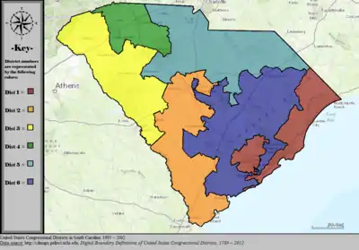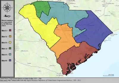 Table of United States congressional district boundary maps in the State of South Carolina, presented chronologically.[6] All redistricting events that took place in South Carolina between 1973 and 2013 are shown.