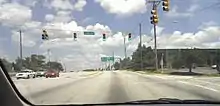 The road begins at US 25 at Augusta Road, heading north as South Pleasantburg Drive, a six lane road, passing by businesses before an intersection over Interstate 85 (I-85). The road continues east as a commercial road, through many business in Greenville, passing by Greenville Technical College's (Greenville Tech) Barton (or Main) Campus[3] and the former McAlister Square Shopping Center to the east of the road. At an interchange with US 276, the road becomes North Pleasantburg Drive, continuing north, passing the Greenville Downtown Airport and the Carolina First Center to the east via Tower Drive.[4][5] The road then passes over Interstate 385, continuing north through the North Hills Shopping Center, quickly followed by Bob Jones University to the west.[6] At the intersection with County Road 304, SC 291 turns west for one block before meeting with US 29 at Wade Hampton Boulevard, before turning northwest. It continues through more commercial development before making a turn west to South Carolina Highway 253 at Paris Mountain Road. According to the SCDOT, this is the official northern terminus. However, signage shows that it continues to an intersection with US 276 at Poinsett Highway.[2][7]