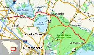 South Carolina Highway 45 (SC 45) is a 76.060-mile (122.407 km) primary state highway in the U.S. state of South Carolina. It serves as the main thoroughfare in northern Berkeley County.[4]