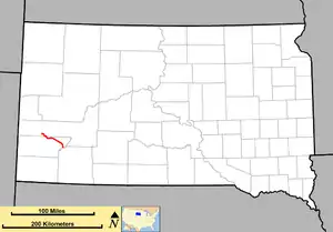 South Dakota Highway 40 (SD 40) is a state highway in southwest South Dakota, United States. The highway is just over 37 miles (60 km) long and runs from U.S. Route 16A (US 16A) in Keystone to Bureau of Indian Affairs Highway 41 in Red Shirt. The highway runs near Mount Rushmore National Memorial in Keystone, and its eastern terminus is on the Pine Ridge Indian Reservation near the edge of Badlands National Park.