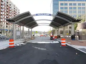 South Glebe opened to the public as one of the original Metroway stations; the station opened for service on August 24, 2014.[1] It was upgraded on April 17, 2016, to run in Arlington's new bus-only highway.[2]
