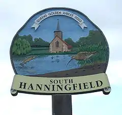The centre of South Hanningfield is situated around the village green, known as the Tye. A village hall is located on the east side of the Tye, while on the west side is a pub, the Old Windmill. There are approximately 69 households in the village.[3] St Peter's Church overlooks the reservoir.