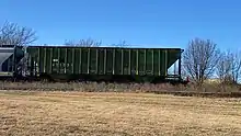 The last hopper car on the South Kansas & Oklahoma Railroad in Owasso, Oklahoma, December 28, 2021
