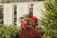 The 1st Battalion spent the war on garrison duty in Quetta, Baluchistan, on the North-West Frontier.[14][15] The 2nd Battalion landed at Le Havre as part of the 7th Brigade in the 3rd Division in August 1914 and spent the entire war on the Western Front.[14][15]