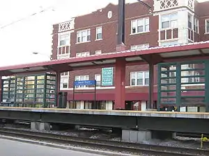 South Shore station is an electrified commuter rail station along the South Chicago Branch of the Metra Electric Line, in the South Shore neighborhood of Chicago. Metra gives the official located at 71st Street near Yates Boulevard and South Shore Drive (U.S. Route 41), however the station is actually located on nearby Exchange Avenue, and is 10.28 miles (16.54 km) away from the northern terminus at Randolph Street Station.[2] In Metra's fare-based system, South Shore Station is in zone B. As of 2018, South Shore is the 180th busiest of Metra's 236 non-downtown stations, with an average of 121 weekday boardings.[1]