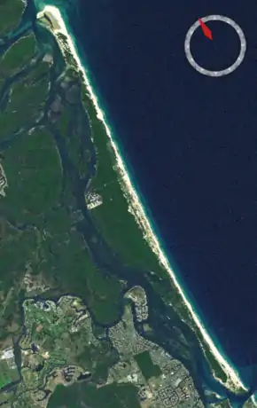 The South Stradbroke Island (Indigenous: Minjerribah[2]), colloquially South Straddie,[3] is an island that lies within Moreton Bay in the Australian state of Queensland, south of Brisbane and forms the northern end of Gold Coast. The island is a locality within the City of Gold Coast.[4] In the 2016 census, South Stradbroke had a population of 41 people.[1]