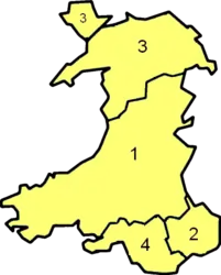| Joint South Wales / Gwent Police area marked as 4 and 2 | |