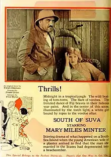 South of Suva is a lost[1] 1922 American silent drama film starring Mary Miles Minter. It was directed by Frank Urson and produced by the Realart Company, a knock production unit of Adolph Zukor's.[2][3]