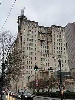 It was designed for Southern Bell by Marye, Alger and Vinour, in an austere art deco style. Originally planned to be 25 stories in height, which would have made it the tallest building in Atlanta, it was completed in 1929 at six stories. Additions in 1947, 1948 and 1963 brought it to its present 14 stories.[2]