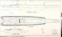 Navigation channel is 1,500 ft (460 m) wide allowing a minimum draft of 50 ft (15 m). Tubes set in dredged trench; trench would be 7,700 ft (2,300 m) long, 60 to 70 ft (18 to 21 m) deep, and 140 to 350 ft (43 to 107 m) wide. Cylindrical tube sections each 200.25 ft (61.04 m) long to be fabricated on land, towed into position, sunk into trench, and covered with sand. Tube sections would be 37 ft (11 m) (outer diameter) and 32 ft (9.8 m) (inner diameter), each weighing 5,253 short tons (4,765 t). Fresh air supplied from ventilation structures to duct under roadway; duct above roadway used for exhaust. |