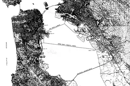 ![]() Map of San Francisco Bay with proposed Southern Crossing (1956 alignment) | |