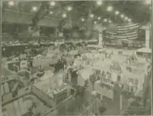 In 1914, the Southern Textile Association approved the bid of Greenville mill owners to host the first textile machinery trade fair in the South.[2] The first show, in 1915, was held in borrowed warehouses; but the trade fair was so successful that Greenville's Southern Textile Exposition, Inc. soon raised the money needed to build a permanent exhibition space, Textile Hall, on West Washington Street, which was effectively completed before the second exposition in 1917.[3] In succeeding years the exhibition was often held biennially.[4]