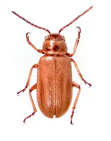 Diorhabda meridionalis is a species of leaf beetle known as the southern tamarisk beetle (SoTB) which feeds on tamarisk trees from Syria to western and southern Iran and southern Pakistan.[1] The SoTB may have potential for use in North America as a biological pest control agent against saltcedar or tamarisk (Tamarix spp.), an invasive species in arid and semi-arid ecosystems (where it might be less accurately referred to along with its closely related sibling species as the 'saltcedar beetle', 'saltcedar leaf beetle', 'salt cedar leaf beetle', or 'tamarisk leaf beetle') (Tracy and Robbins 2009).