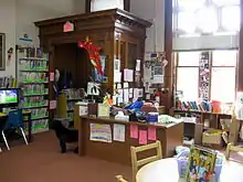 In 1907 the Heubels enlarged the library space by breaking through a wall.[14] By July 1909 the collection had grown from 613 to 2,600 books. Whereas circulation for the nine months ending June 30, 1905 had been 6,816, by 1909 it had grown to 15,489.[14] The library began a children's hour that year in efforts to promote closer relationships with children.[15]