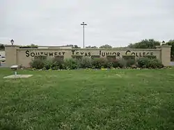 Southwest Texas Junior College is a public community college with four campuses serving eleven counties in southwest Texas: unincorporated Uvalde County (next to Uvalde and on the site of Garner Field),[2] Del Rio (northwest portion), next to Del Rio International Airport,[3] unincorporated Maverick County (near Eagle Pass),[4] and Crystal City, the seat of Zavala County.[5]