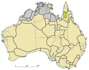 Southwestern Paman languages (green) among other Pama–Nyungan (tan)