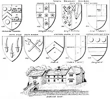 The earliest record of a manor house of Southwick dates to 1274 when two carucates (about 240 acres) of land at Southwick, in what was then the parish of North Bradley, belonged to one William de Greynville. Twenty years later, in 1294, records show a legal agreement between the Rector of North Bradley and William’s son Adam de Greynville, who had built a private chapel in the grounds of his house Southwick Court, apparently dedicated to John the Baptist. The Rector of Bradley agreed to allow services to take place in this chapel,[2] on the condition that only members of the Greynville family and "strangers arriving unexpectedly" could attend.[3] The family was also required to provide the Rector "from time to time" with "fit chaplains" who would "do fealty to him". Later, in 1369, Robert Wyvil, Bishop of Salisbury, granted a license for mass to be said in the chapel.