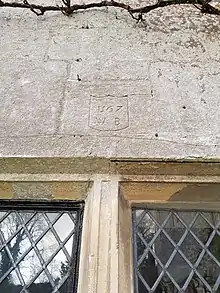 For much of the period from the late 17th century until the mid-19th century, Southwick Court was leased to tenants. The MP and political pamphleteer John Trenchard, co-author of The Independent Whig, lived in the house until his death in 1723.[10] In 1733, the manor was being let to one Richard Pinnock for an annual rent of £126.[11] In 1788, further alterations were made to the house and a new set of initials inscribed on the same wing upon which Walter Bush had left his mark more than two centuries before. These carvings, however, have survived the weather less well than their predecessors, making the letters indistinct. In 1820, the occupier was James Chapman with his family.[12]