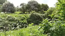 The site is mainly grassland, with hedgerows of elm scrub. These were mainly dominated by elm trees until they were destroyed by Dutch Elm Disease.[6]