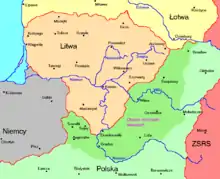 In September, when the Poles had gained an upper hand and were pursuing the Soviets back to the east, Soviet forces moved at will through Lithuanian-controlled territory, but Polish forces that tried to pursue them were arrested and interned.[12] Lithuania's declared neutrality was challenged by Poland, which accused Lithuania of allowing free Soviet passage through its territory, which Lithuania could not deny.[15] The treaty did not create a formal military alliance between the Soviets and the Lithuanians but it diminished Lithuania's standing as a neutral state.[9][12] Łossowski wrote that Lithuania's lack of neutrality towards Poland was such that "the Polish government could have with full justification treated Lithuania as a country participating in the war on the other side, with all of its political and legal implications".[12] Historian Alfred E. Senn wrote that "the Lithuanians cannot claim to have been 'strictly neutral'", and that "the Lithuanians should not have been surprised when, at the end of August, Warsaw refused to recognize Kaunas's neutrality".[19]