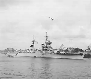 The Sverdlov-class cruisers, Soviet designation Project 68bis, were the last conventional gun cruisers built for the Soviet Navy. They were built in the 1950s and were based on Soviet, German, and Italian designs and concepts developed prior to the Second World War. They were modified to improve their sea keeping capabilities, allowing them to run at high speed in the rough waters of the North Atlantic. The basic hull was more modern and had better armor protection than the vast majority of the post Second World War gun cruiser designs built and deployed by peer nations. They also carried an extensive suite of modern radar equipment and anti-aircraft artillery. The Soviets originally planned to build 40 ships in the class, which would be supported by the Stalingrad-class battlecruisers and aircraft carriers.