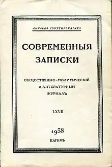 Sovremennye zapiski (Russian: Современные записки, "Contemporary Papers") was a politicized literary journal published from 1920 to 1940.[1][2] A group of adherents of the Russian Socialist-Revolutionary Party launched the journal during the Russian Civil War.