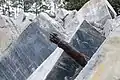 Eino was sent stone samples from a rock quarry in Brazil at the start of the project and "[he] thought, oh my, this is three times harder than marble. But immediately I understood this was the right stone. It is more permanent than anything else. No pollution can hurt it. No graffiti will harm it. It was the right stone to be here for 1,000 years."[1] Over 175 tons of Brazilian blue quartzite was shipped and stored in a parking lot while Eino and Maxwell sought to secure a home for the sculpture.[1] Locations in Berkeley to Washington, D.C., were proposed, but all were turned down by local art commissions or city councils.[1][5] For nearly a year, Eino argued to have the sculpture placed in the streets of San Francisco, but the San Francisco Arts Commission's Visual Arts Committee turned it down by saying it "not only had little or nothing to do with the city" but "was too big and did not represent Brower's ideals."[6][7]