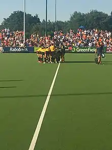 The Spain women's national field hockey team represents Spain in the international field hockey competitions. The team won the gold medal at the 1992 Summer Olympics at their first ever Olympic appearance in front of their home crowd in Terrassa, coached at the time by José Manuel Brasa.[2]