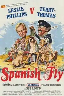 Spanish Fly is a 1975 British-Spanish comedy film directed by Bob Kellett and starring Leslie Phillips, Terry-Thomas, Graham Armitage, Sue Lloyd and Nadiuska.[2][3]