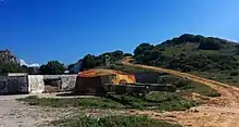 On 17 June, while at Cartagena, she was destroyed by an accidental internal explosion and fire, although sabotage was suspected.[2][28] Some 200 men were killed in the explosion.[29] She was refloated, but determined to be beyond repair. She was officially discarded on 3 July 1939 and was subsequently broken up for scrap.[2][28] All the guns were recovered from the wreck and were erected in coastal artillery batteries in 1940 near Tarifa to cover the Strait of Gibraltar. Four of her guns, from the fore and aft turrets, were mounted two apiece at the Vigia Battery (D-9) and the Cascabel Battery (D-10). Each battery consisted of a concrete emplacement that included a magazine and a separate command post. Both batteries were abandoned in 1985 but are still present, albeit in a state of degradation owing to a lack of maintenance.[30][31]