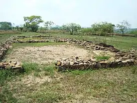 Before the conquest, El Salvador formed a part of the Mesoamerican cultural region.[4] The central and western portions of the territory were inhabited by the Pipil,[3] a Nahua people culturally related to the Aztecs of Mexico.[4] The Pipil were divided into three main provinces in El Salvador; the two largest were Cuscatlan and Izalco, while Nonualco was the smallest of the three.[5] Cuscatlan extended from the Paz River in the west to the Lempa River in the east.[6] Izalco lay to the southwest of Cuscatlan and was subservient to it on the eve of the Spanish conquest;[7] its territory is now incorporated into the modern departments of Ahuachapan and Sonsonate.[8] The Nonualco area is in the region of La Paz centered around the city of Zacatecoluca. Other indigenous groups with territories in El Salvador were the Ch'orti' and the Poqomam (both of these were Maya peoples), the Lenca, the Xinca, the Kakawira, the Mangue, and the Matagalpa. The Postclassic Maya and Pipil cities were relatively small by Mesoamerican standards, especially when compared with the great Maya cities of the earlier Classic period (c. 250–950 AD).[9] The Lenca occupied territory to the east of the Lempa River,[10] where their principal kingdom was Chaparrastique.[11] Chaparrastique extended across territory now incorporated into the departments of La Unión, Morazán, and San Miguel. The Ch'orti' and Poqomam occupied territories in the west near the present day border of Guatemala. The extreme east of El Salvador was occupied by the Mangue, with the Matagalpa in the southeast. The population of the entire territory of El Salvador is variously estimated between 130,000 and 1,000,000 at the time of the conquest;[7] the low-mid estimates within this range are more likely.[12]